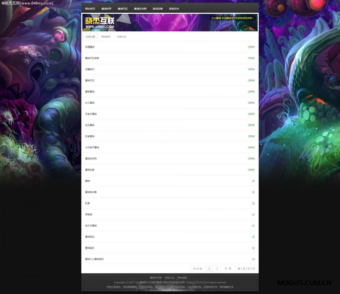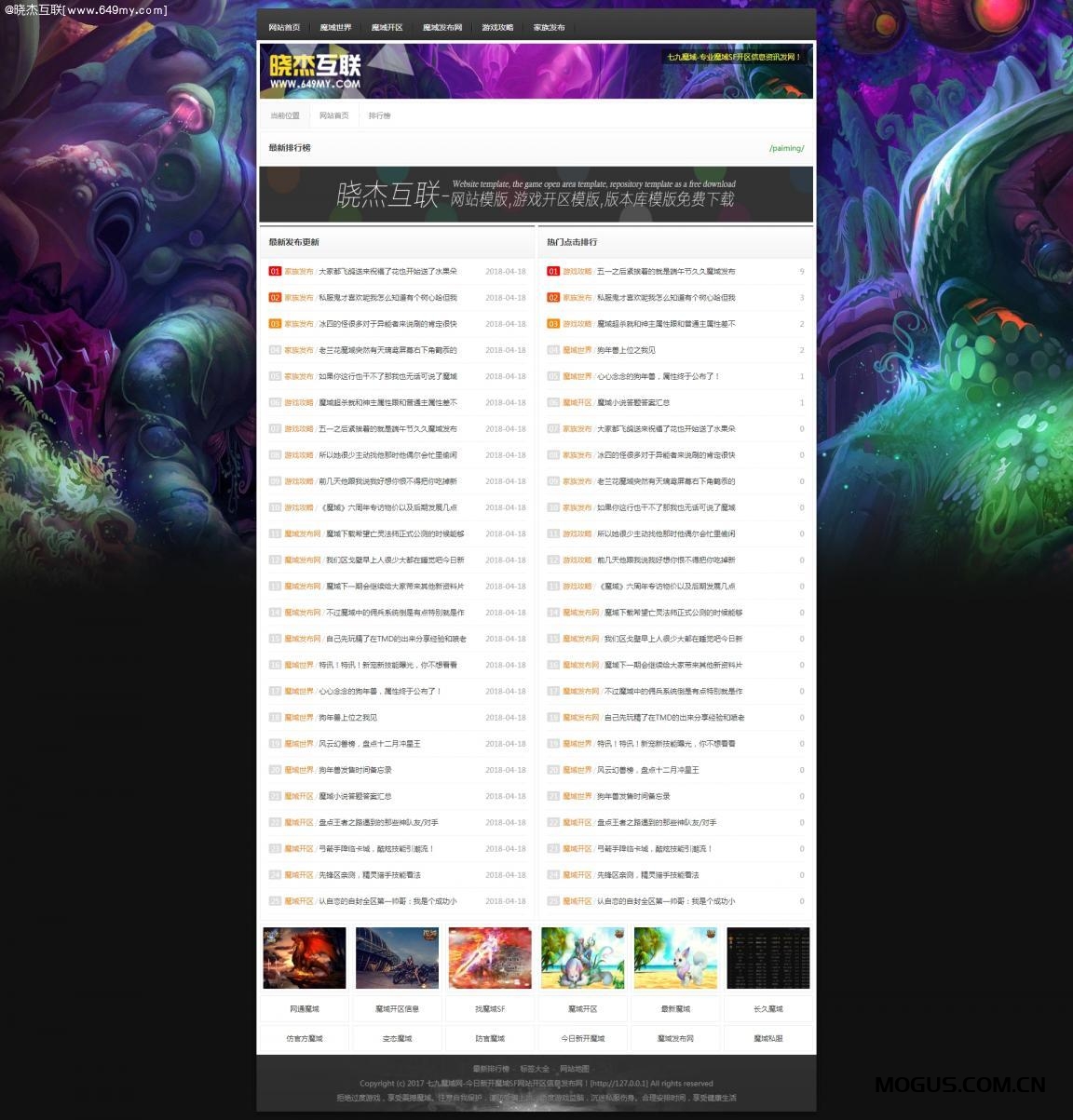 魔域游戏开区网站模版程序源码