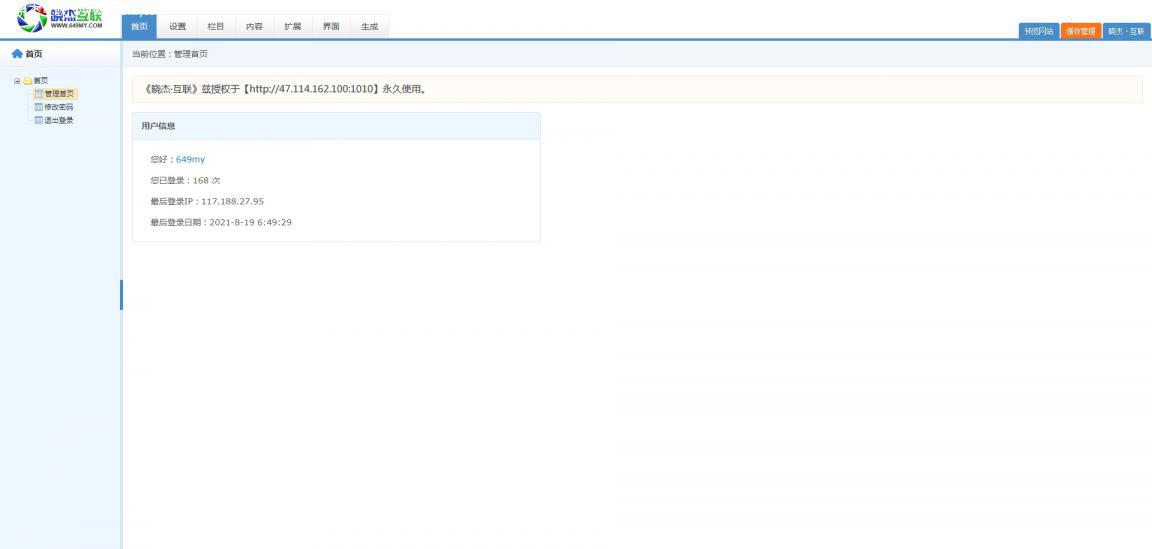 后台地址:您的域名/649my