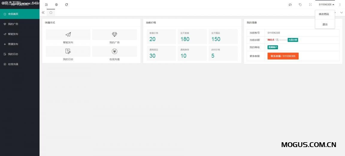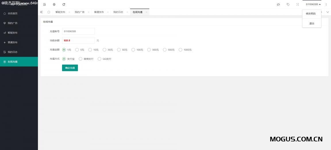 后台地址:您的域名/649my