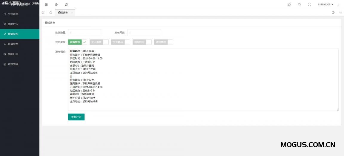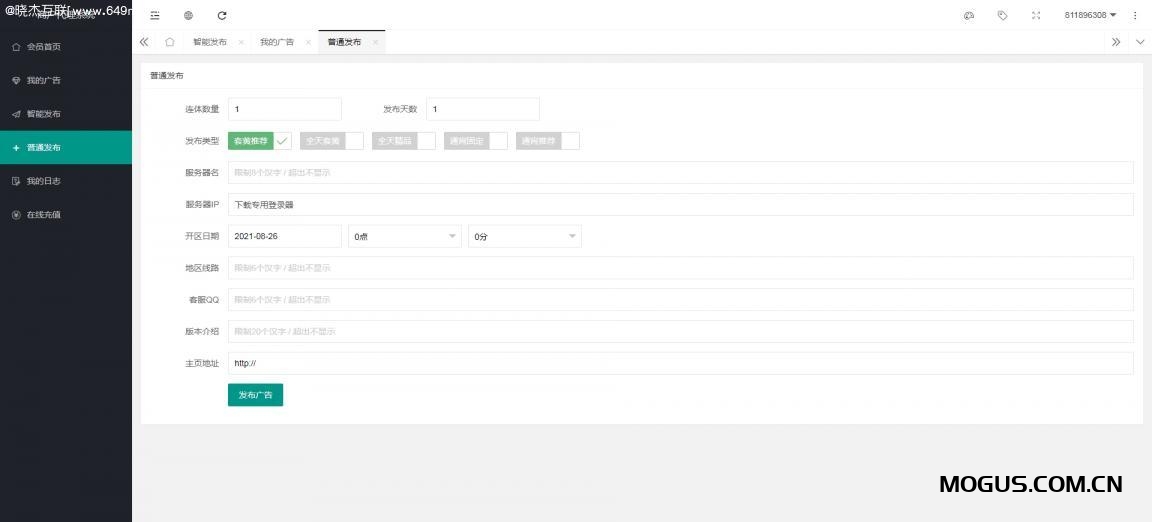 客户要求制作热血江湖模块版发布站程序,响应式。跑竞价!